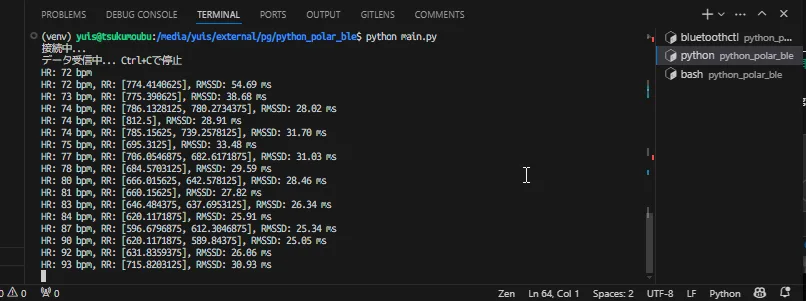 polar h10+pythonでのリアルタイム心拍変動/HRV解析。こんなあっさりできるのな…