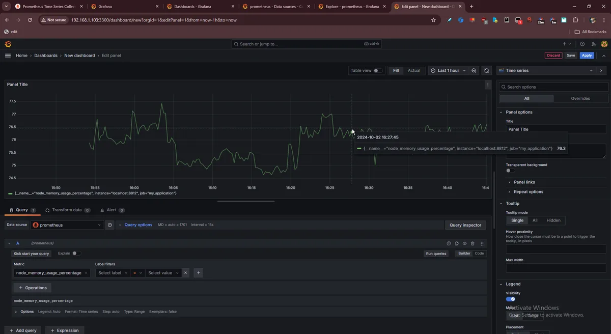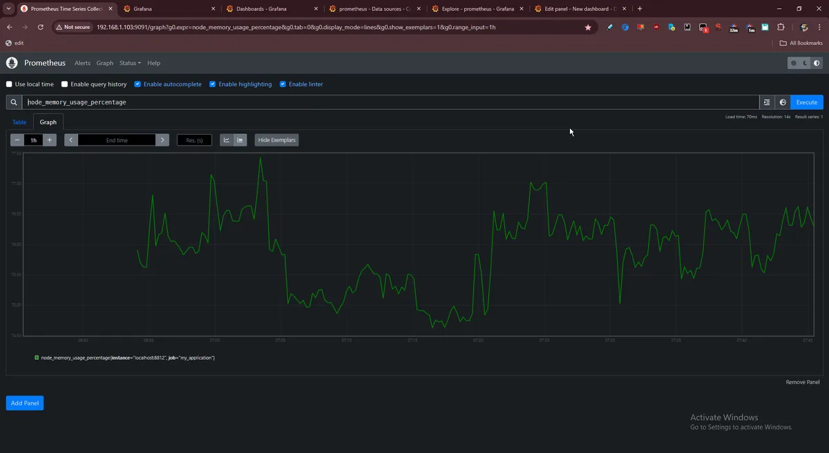 ローカルで記録したram使用率をprometheusに入れてprometheusでチャートの簡易チェック、grafanaで試しチャーティング。