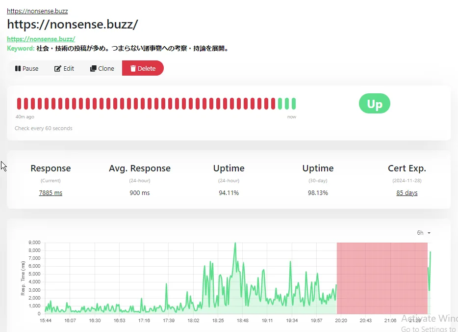 tmuxしてると当然思っててvscode killしたけど生コンソールでやってたらしく落としてた。 アラートは設定してなかったが、とりあえずuptime kumaが早期発見に役立った
