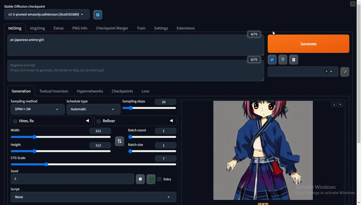 gpuと言えば機械学習でしたよね。というわけでstable diffusion。 せっかく12gbあるので。 windowsにweb ui入れたけど、cudaとかの設定なくても動くんだね。よく分からんけど