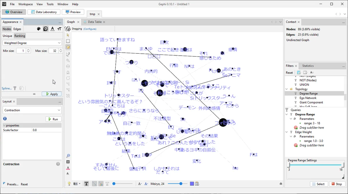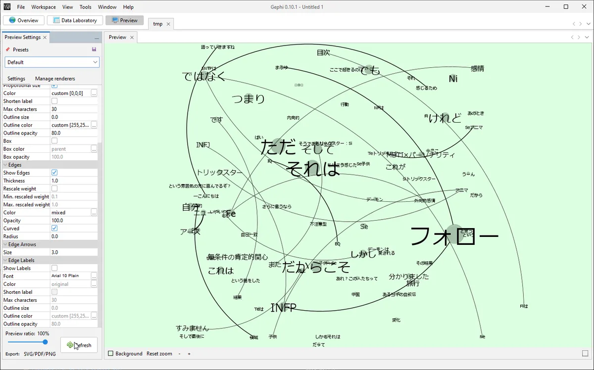 Gephiネットワーク分析。Bigram日本語NLP→gexf。