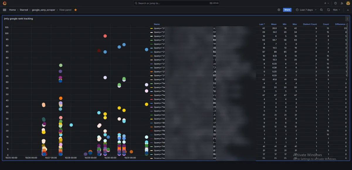 Google検索結果順位のgrafana/prometheusトラッキング分析ツール。ちなみに。 検索からこの投稿見つけて欲しい人いれば作り方(使い方・ダッシュボード・コード)なら売れます。データは売れない。